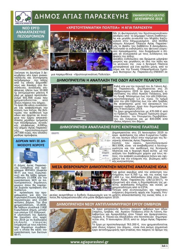 Άρθρα - Δελτία Τύπου ΔΗΜΟΣ ΑΓ.ΠΑΡΑΣΚΕΥΗΣ: ΕΝΗΜΕΡΩΤΙΚΟ ΔΕΛΤΙΟ ΔΕΚΕΜΒΡΙΟΥ 2018 Last updated Αυγ 25, 2020 774 Συνεχίστε την ανάγνωση