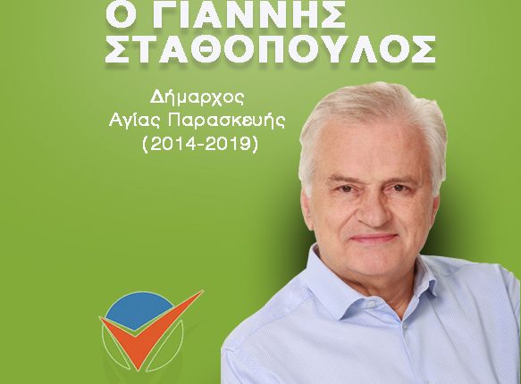Δήμαρχος της Αγίας Παρασκευης μέχρι το 2019 ο Γιαννης Σταθοπουλος,είναι σήμερα Δημοτικός Σύμβουλος,επικεφαλης της Αξιωματικής Αντιπολιτευσης στο Δήμο.